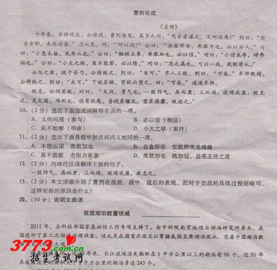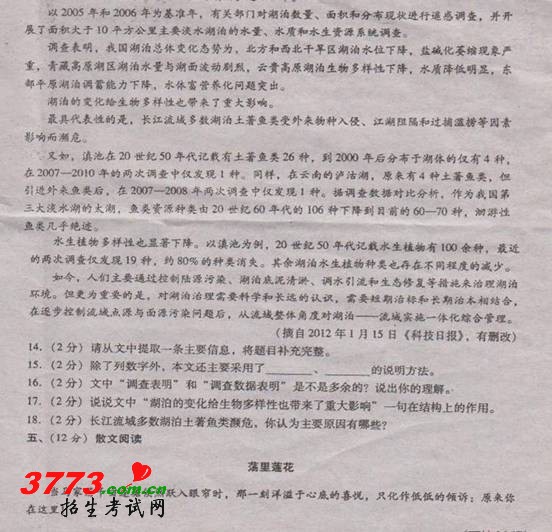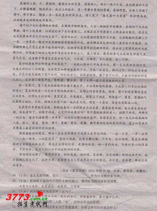 [组图]2012年湖北荆州市中考语文试题试卷及答案