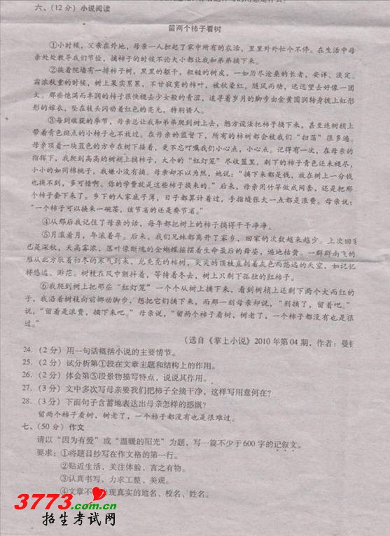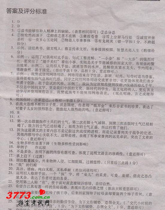 [组图]2012年湖北荆州市中考语文试题试卷及答案