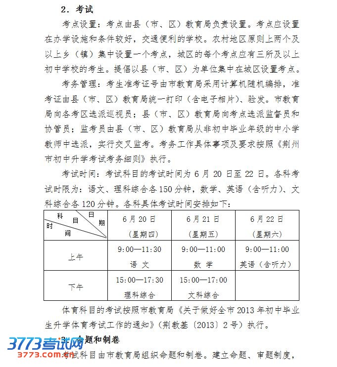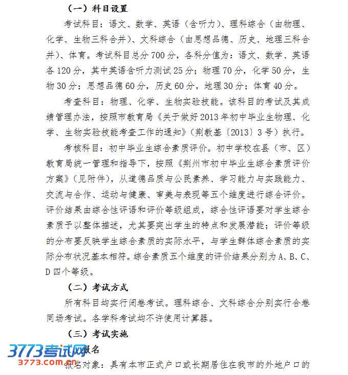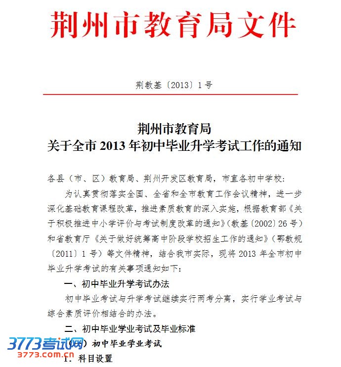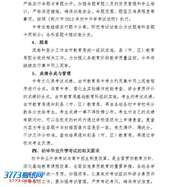 [组图]荆州教育局2013年荆州中考考试工作的通知
