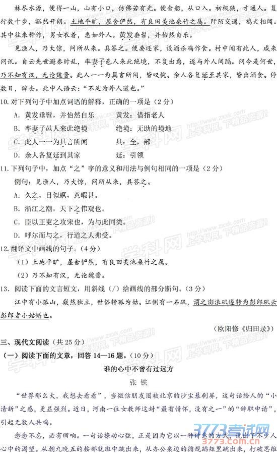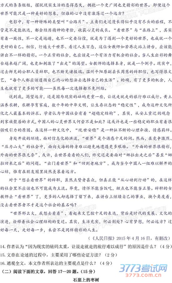 [组图]2015年济宁中考语文试题及答案发布