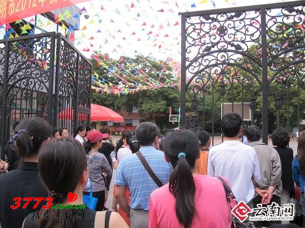 云师大实验中学外前来接考的家长们。