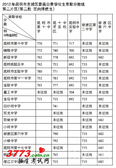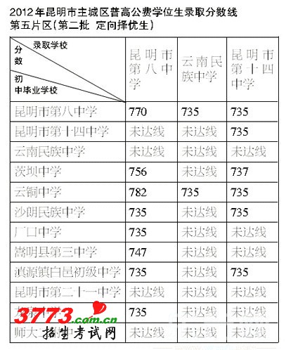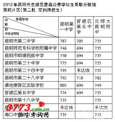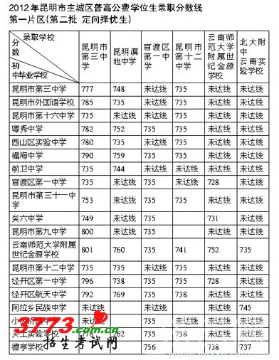 [组图]2012年昆明一级完中录取分数线及定向择优生录取分数线