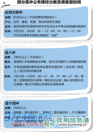 昆明市教育局纪检监察部门通过本报提醒考生,正式的中考录取分数线将通过云南主流媒体发布,并在中国昆明、昆明教育信息港等政府部门的官方网站发布,对于不实的网络消息,家长和考生不要听信。