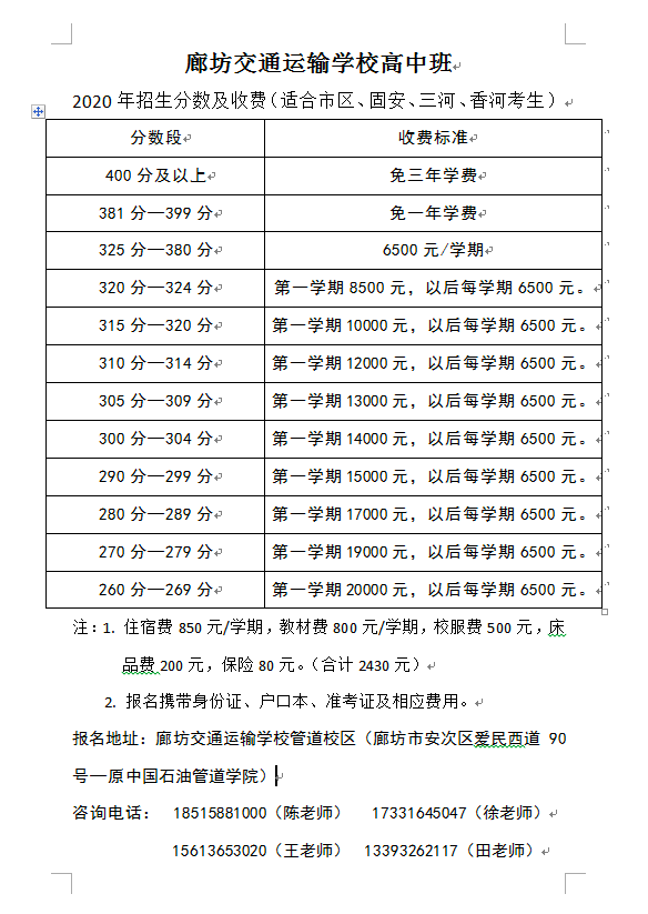 廊坊2020年各高中中考录取分数线公布!