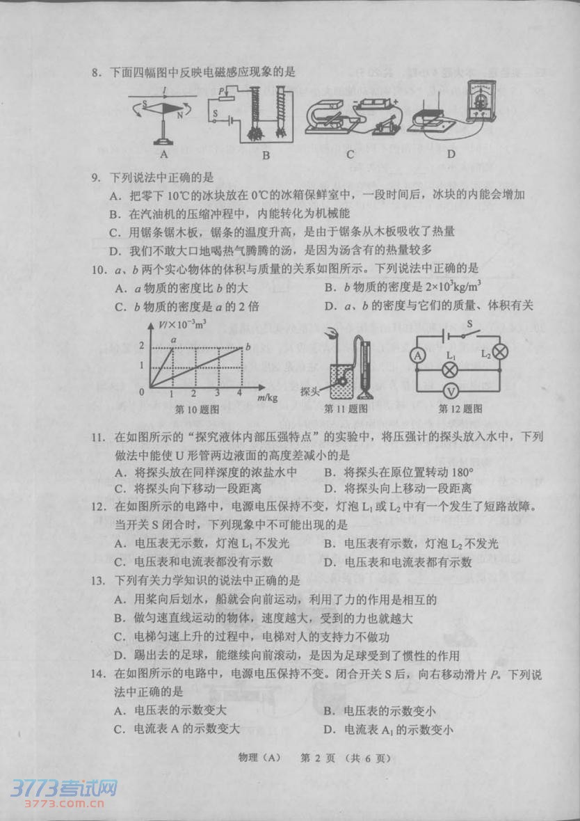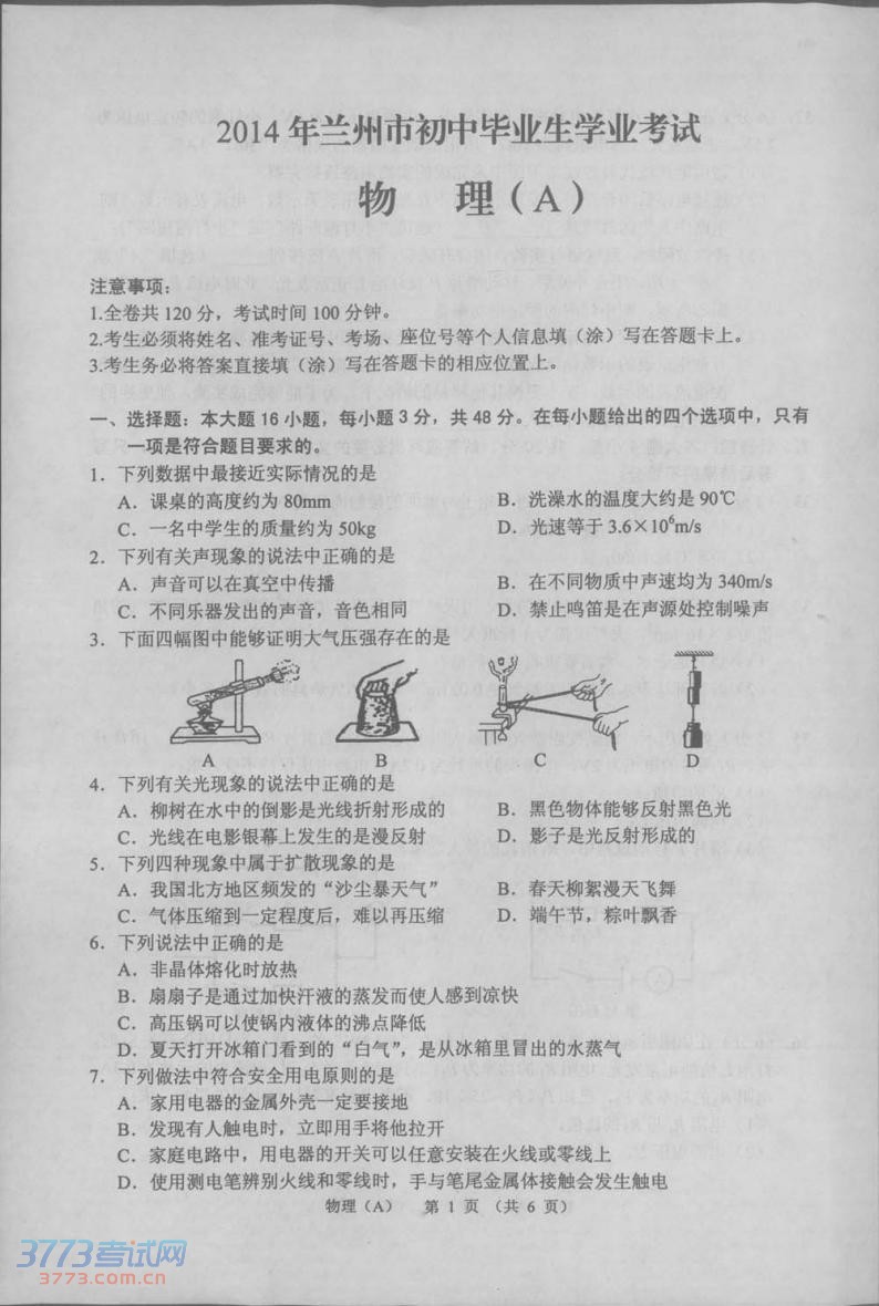 [组图]2014兰州中考物理试题发布