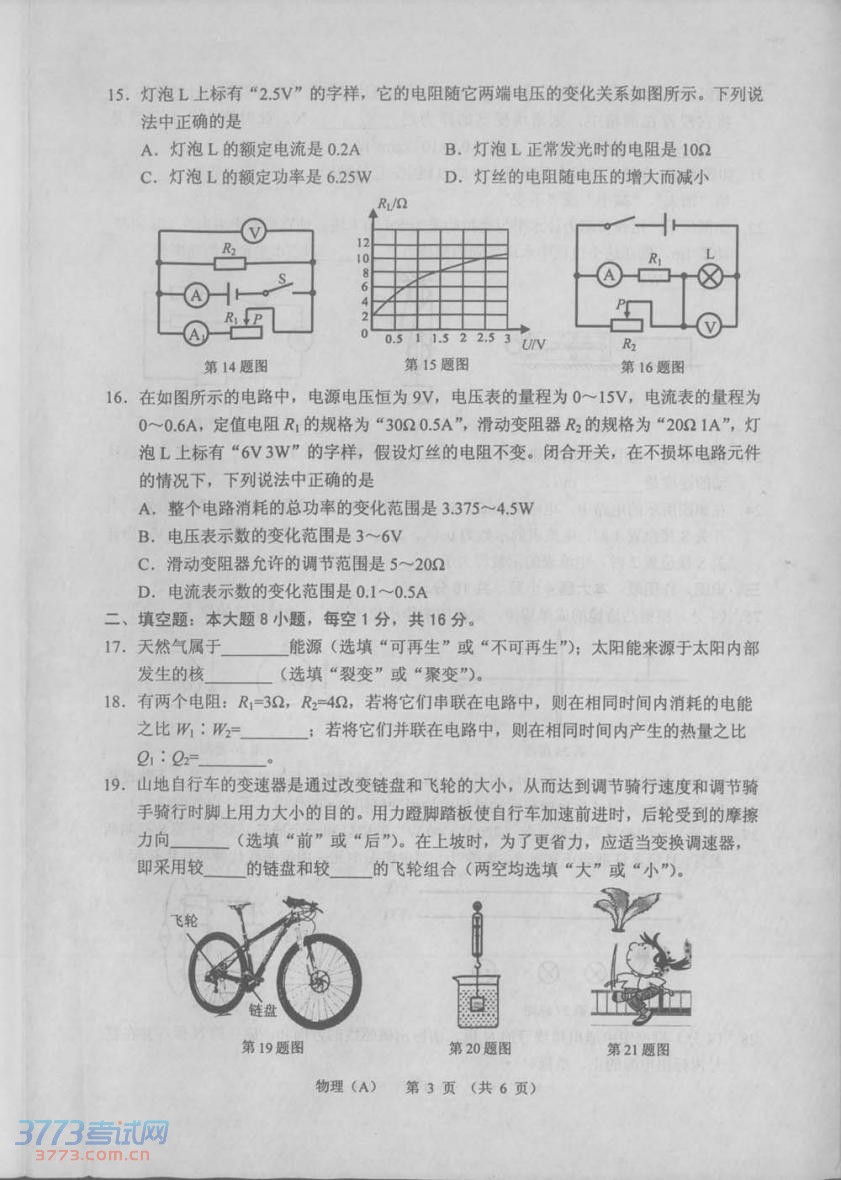 [组图]2014兰州中考物理试题发布