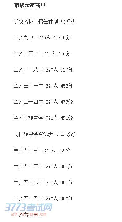 兰州民族中学 270人 450分