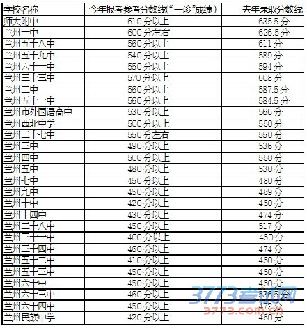 [图文]2015兰州高中报考参考分数线及2014年录取分数线