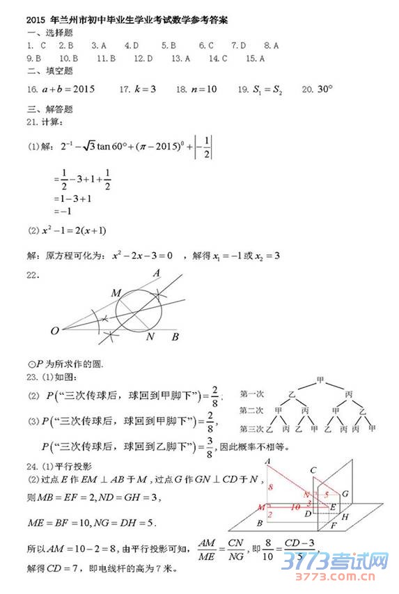公布甘肃省兰州市中考试题、答案和中考作文。祝各位考生都能取得好的成绩。甘肃省兰州市2015年中考数学答案:
