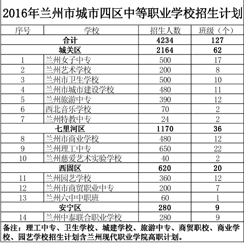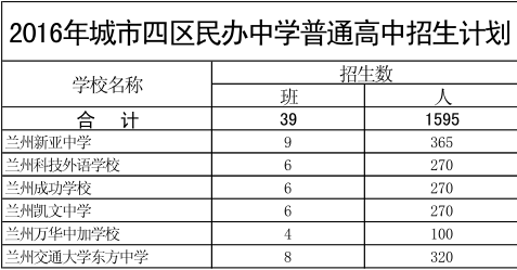 2016年兰州市高中阶段学校招生计划公布
