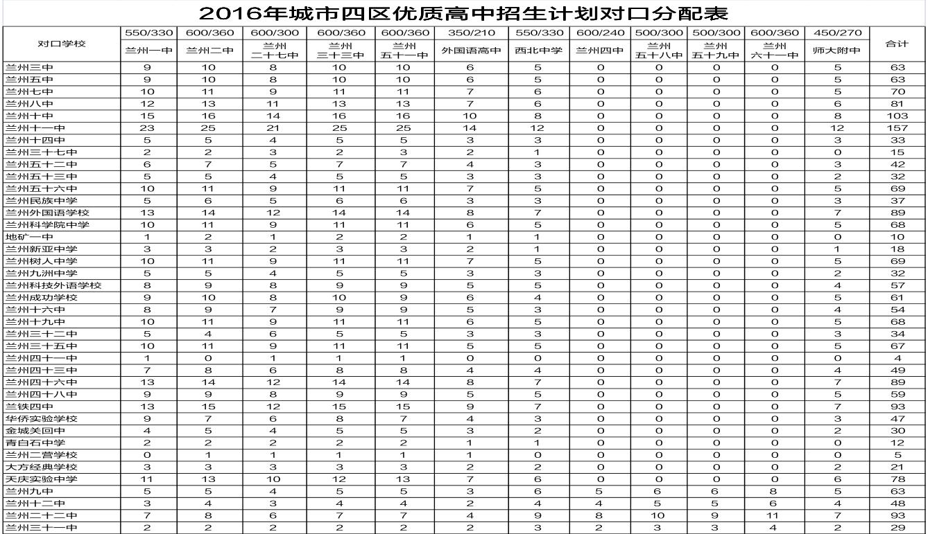 每日甘肃网-兰州晨报4月9日讯(记者武永明 实习生朱瑞琴)记者从4月8日召开的2016年兰州市初高中招生工作会上获悉,今年兰州市中考招生录取时,省级示范性高中对口分配比例为60%(兰州二十七中对口分配比例为50%),与去年相比没有变化,兰州四中对口分配比例为40%。