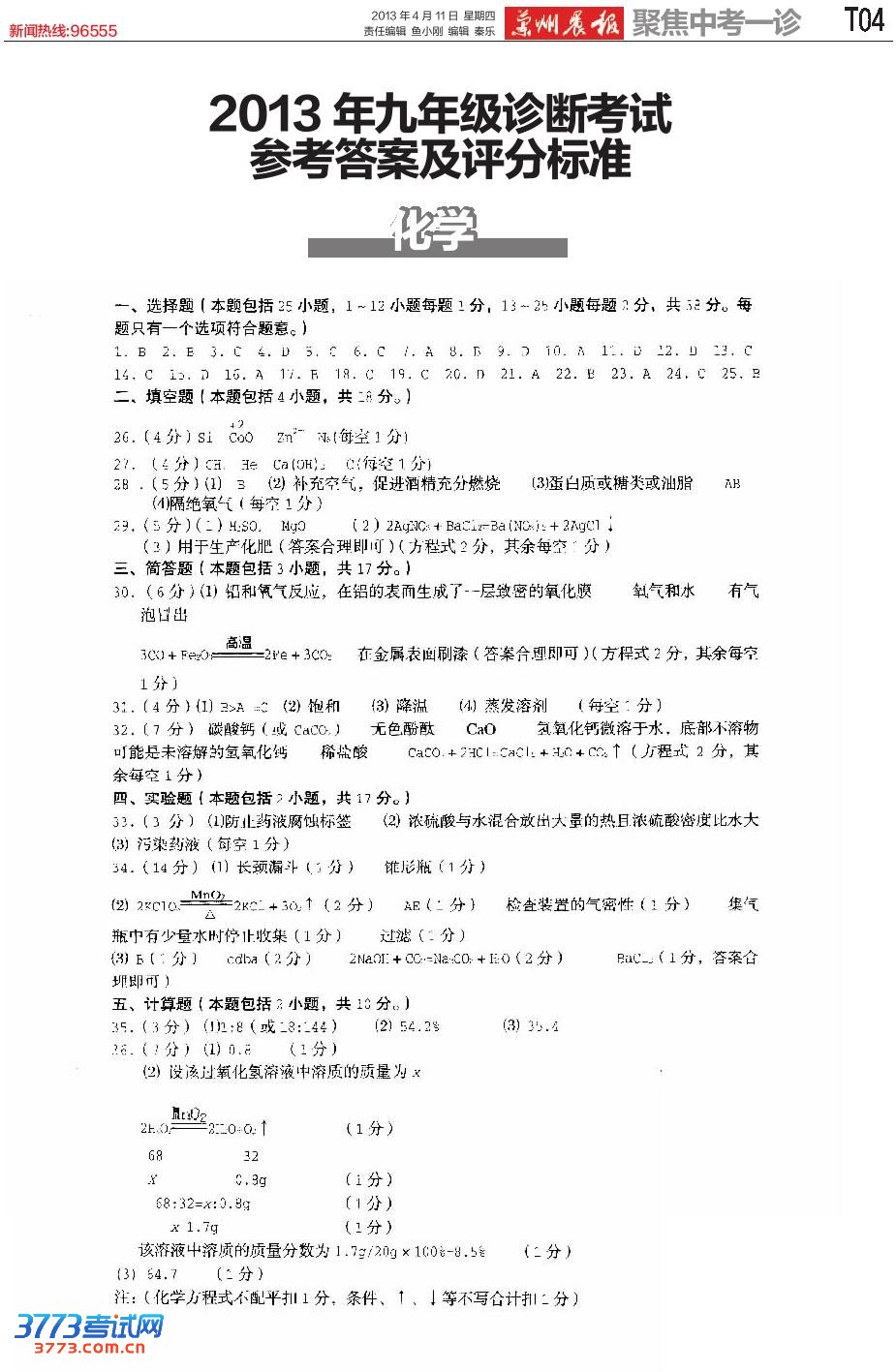 [图文]2013兰州中考一诊化学答案