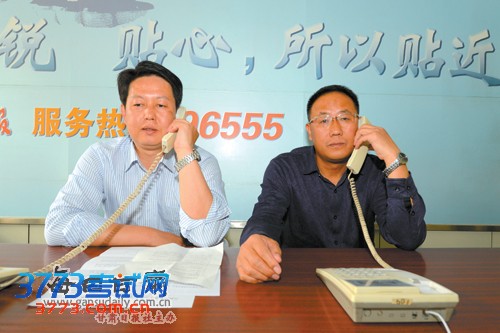 5月2日中午,兰州五十三中(兰铁三中)副校长谢平(图右)、政教处主任汪宏玮(图左)值守本报96555热线,并为考生及家长解疑答惑。以下为热线实录: