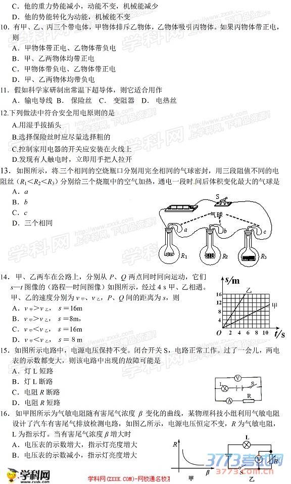 公布乐山中考试题、答案和中考作文。祝各位考生都能取得好的成绩。2015年四川省乐山市中考物理试题:
