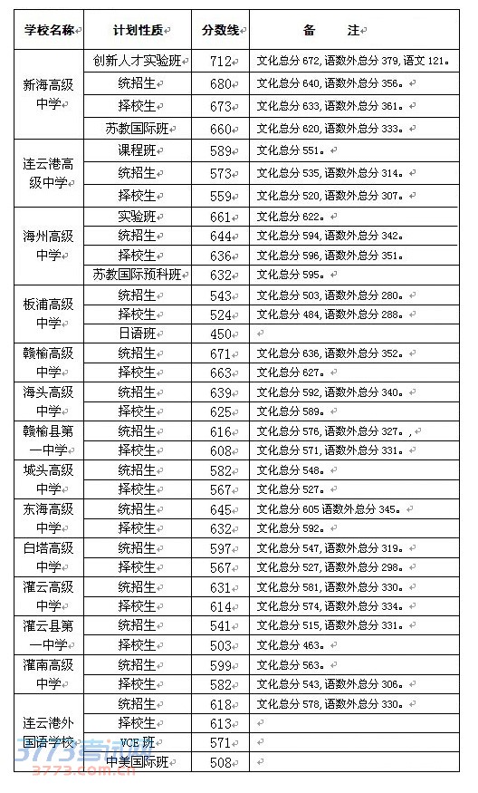 [组图]2014连云港中考分数线划定 各高中录取分数线