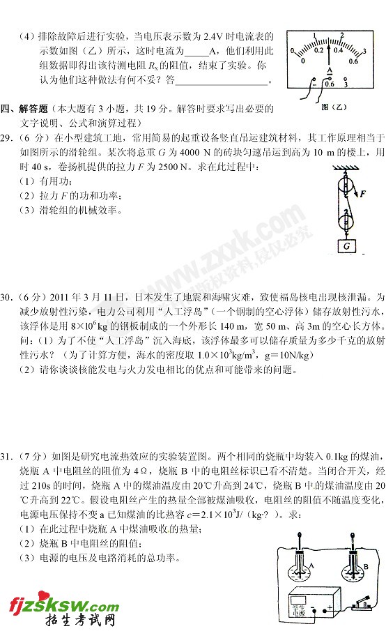 [组图]江苏连云港2011中考物理试题及答案
