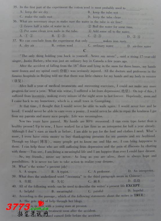 相关文章 2016连云港初二会考地理生物试题及答案2016连云港中考政治历史试题及答案2016连云港中考物理化学试题及答案2016连云港中考英语答案 连云港中考英语试题及答2016连云港中考数学答案 连云港中考数学试题及答2016连云港中考语文答案 连云港中考语文试题及答2016中考试题及答案专题汇总入口2016年连云港市普通高中招收体艺特长生报名表2016年连云港市普通高中体艺特长生招生计划2016连云港中考体艺特长生专业考试项目及办法 触屏版 电脑版 3773考试网 琼ICP备12003406号-1