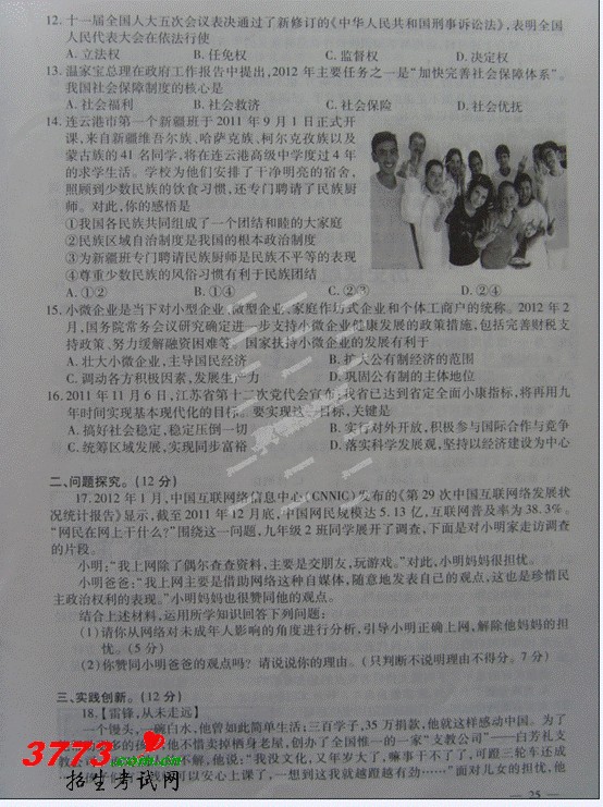 相关文章 2016连云港初二会考地理生物试题及答案2016连云港中考政治历史试题及答案2016连云港中考物理化学试题及答案2016连云港中考英语答案 连云港中考英语试题及答2016连云港中考数学答案 连云港中考数学试题及答2016连云港中考语文答案 连云港中考语文试题及答2016年连云港市普通高中招收体艺特长生报名表2016年连云港市普通高中体艺特长生招生计划2016连云港中考体艺特长生专业考试项目及办法2016连云港中考高中体艺特长生实施办法 触屏版 电脑版 3773考试网 琼ICP备12003406号-1