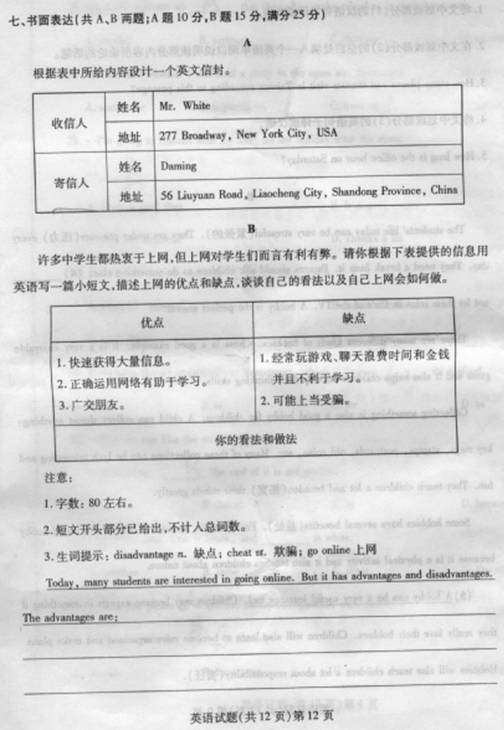 [组图]2011年山东聊城中考英语试题