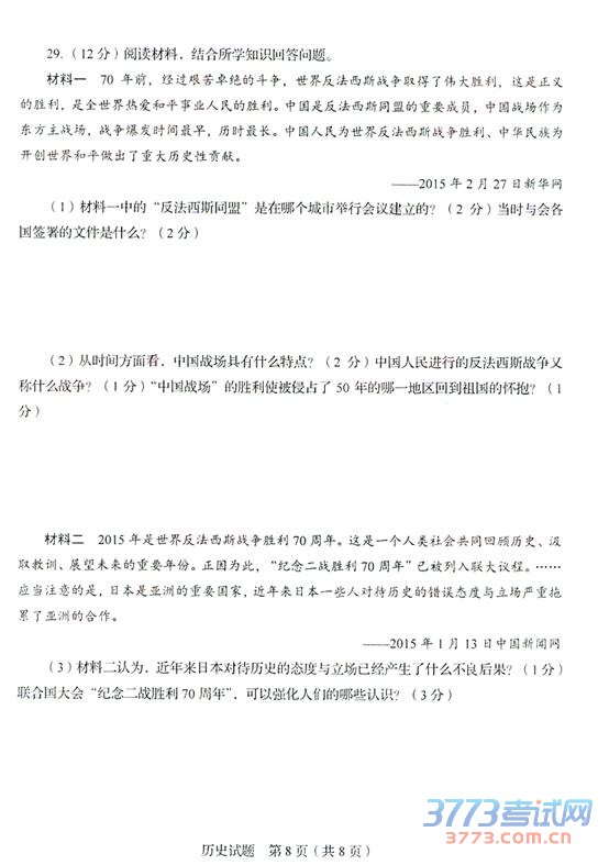 [组图]2015临沂中考历史试题发布