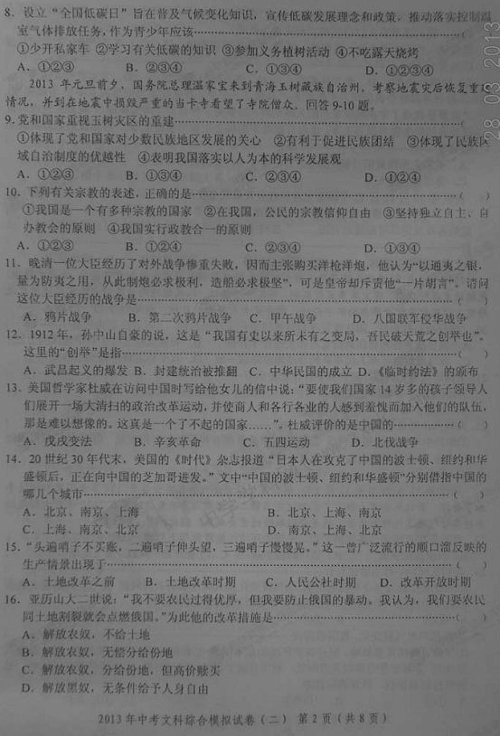 1、本试卷共8页,卷I为选择题 卷II为非选择题 考试时间120分钟 满分120分