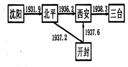 8.右图是号称“中国第一所流亡大学”——东北大学迁徙路线示意图(局部)。东北大学从沈阳迁到北平的原因是