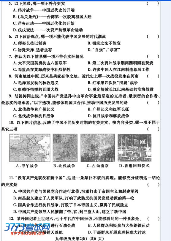 [组图]2013河南许昌中考一模历史试题及答案