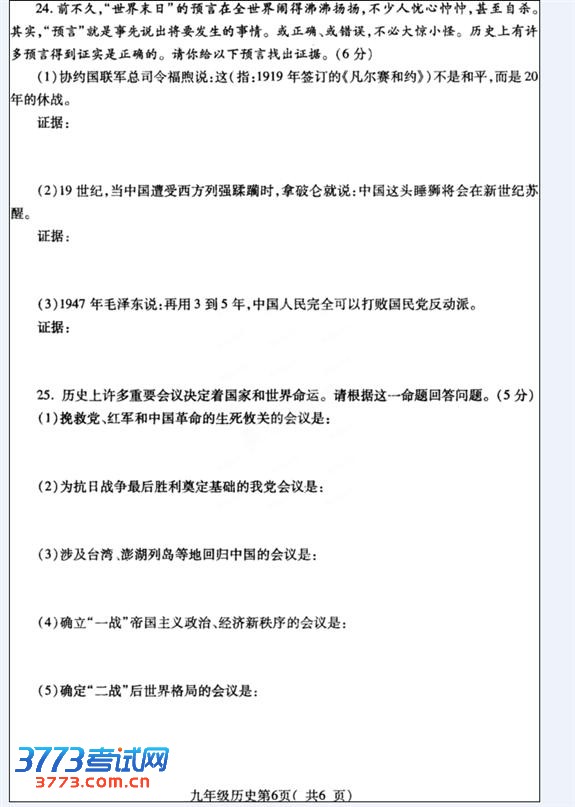 3773考试网2016中考历史正文