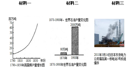 (1)阅读材料一,指出英国煤产量逐年提高的主要原因是什么?(2分)