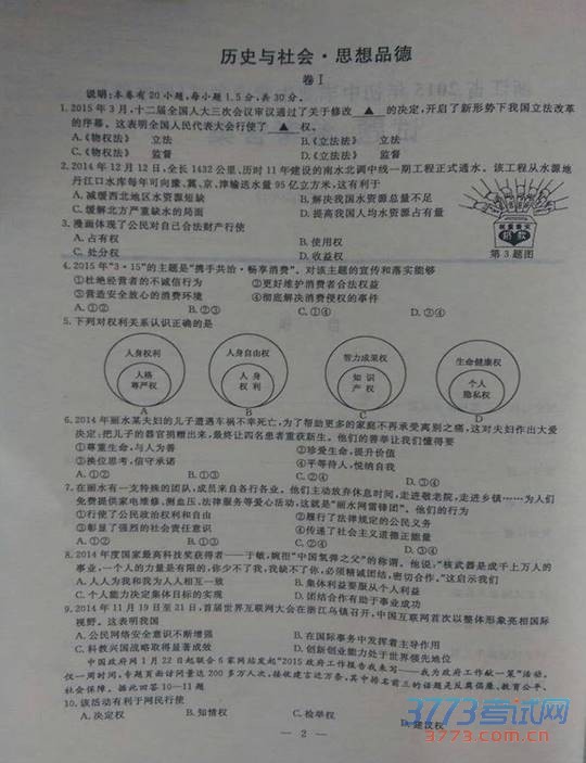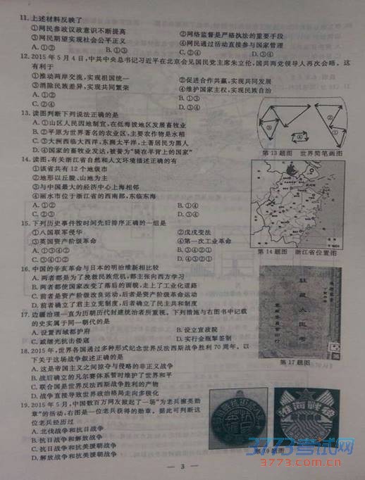 [组图]2015丽水中考历史社会思品试题及答案发布