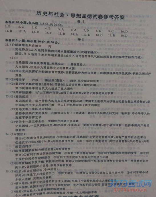 [组图]2015丽水中考历史社会思品试题及答案发布
