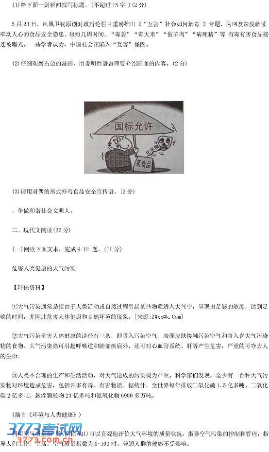 [组图]2013丽水中考语文试卷及答案发布
