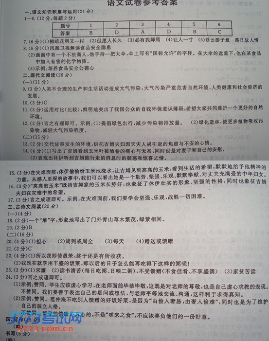 [组图]2013丽水中考语文试卷及答案发布