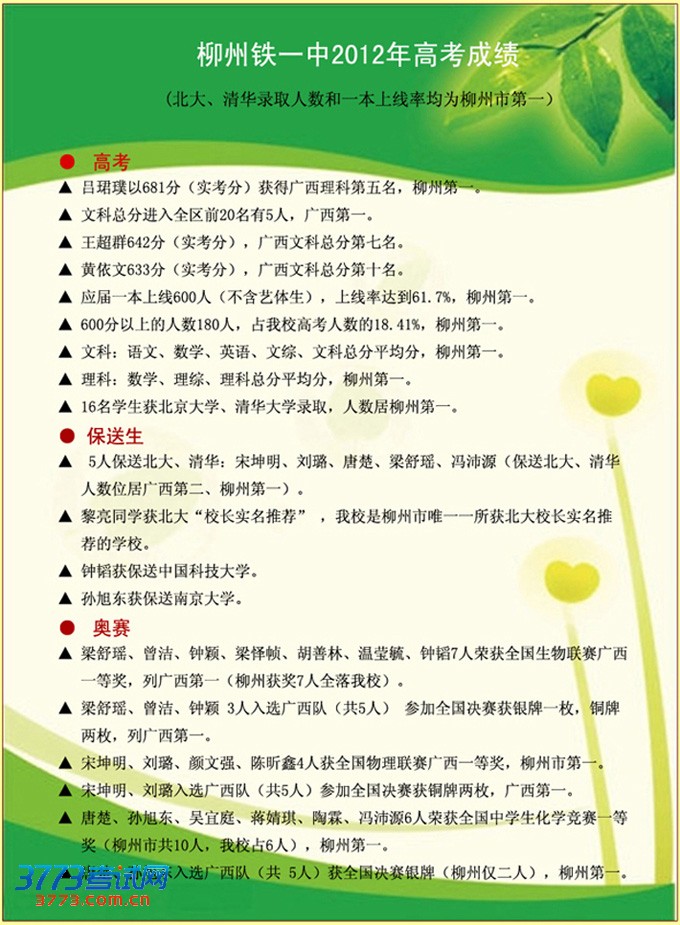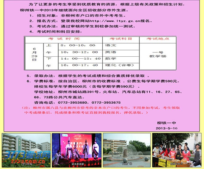 [组图]柳铁一中2013年市外生源招生公告