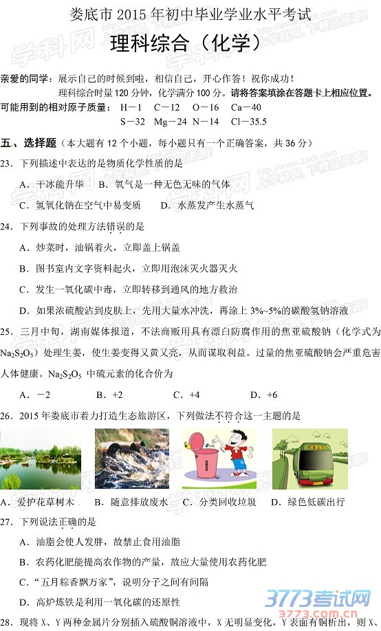 考试后及时公布中考试题、答案和中考作文。祝各位考生都能取得好的成绩。2015年湖南娄底中考化学试题(图片版):