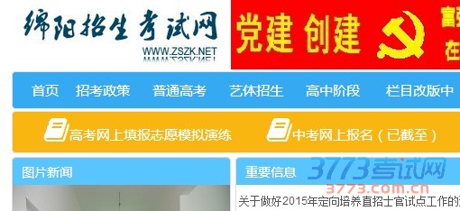 3773中考频道小编为您整理了2015绵阳中考成绩查询时间及入口:绵阳教育局网站 绵阳教育网 绵阳教育体育网http://www.my-edu.net/ 绵阳招生考试网http://www.zszk.net/ ,供大家参考学习。
