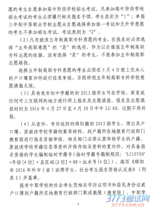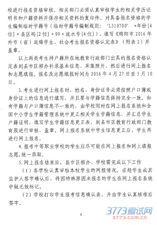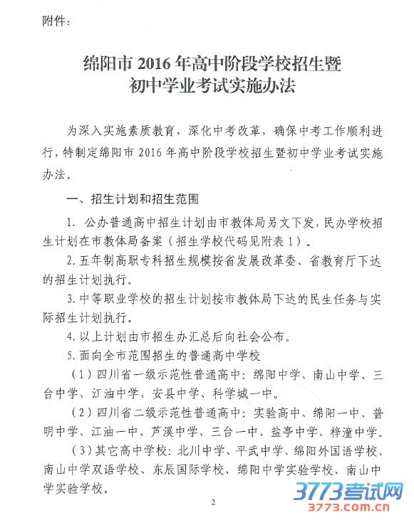 绵招委【2016】5号_关于印发《绵阳市2016年高中阶段学校招生暨初中学业考试实施办法》的通知1