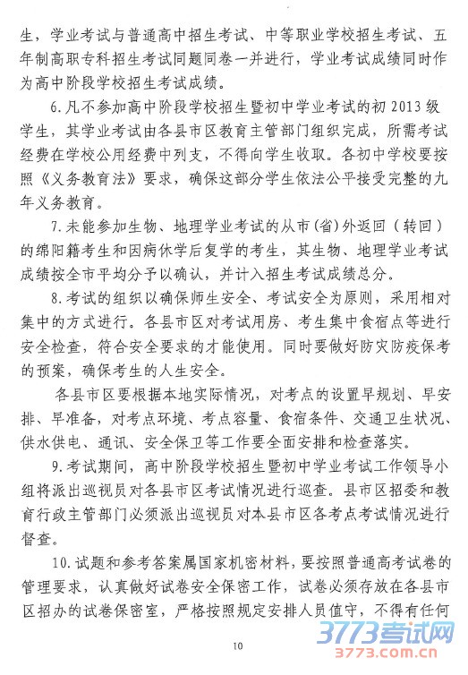 绵招委【2016】5号_关于印发《绵阳市2016年高中阶段学校招生暨初中学业考试实施办法》的通知1