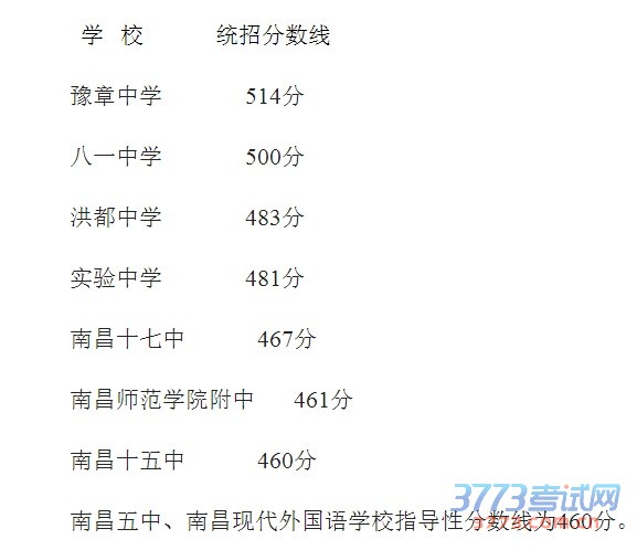 南昌五中、南昌现代外国语学校指导性分数线为460分。