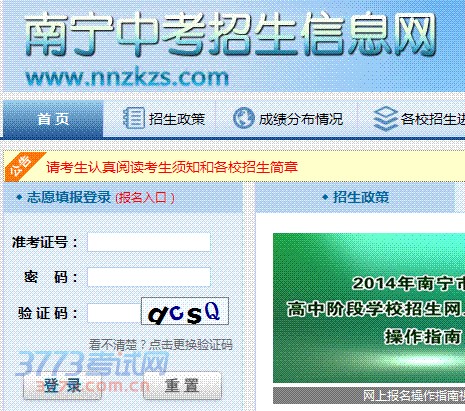 [图文]南宁中考招生信息网2014中考成绩查询入口开通