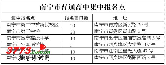 考虑到西乡塘区考生比较多,今年增设了南宁市外国语学校和南宁市第三十六中学报名点,这一报名点的设置,也方便了金陵、坛洛、双定的考生报考。为了方便江南区与良庆区的考生,今年也增设了南宁市第二十一中学为集中报名点。