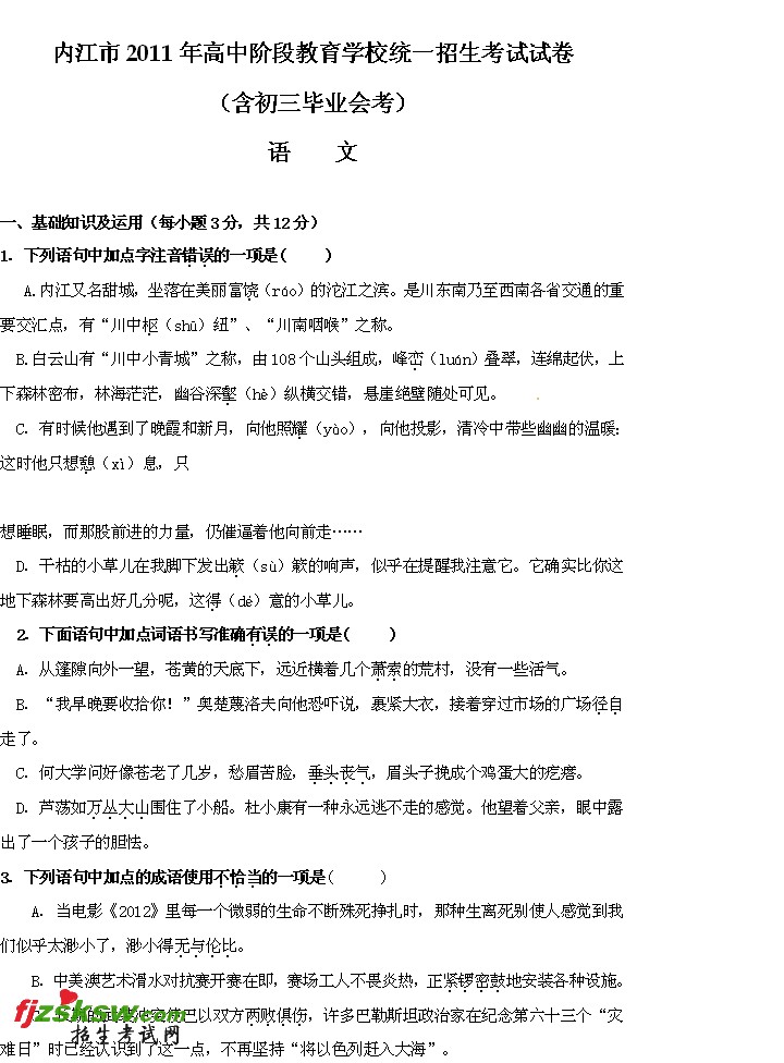 [组图]四川内江2011年中考语文试题