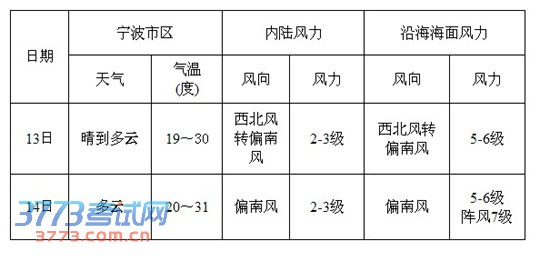 中国宁波网6月11日讯(记者 殷聪)据宁波市气象台消息,今年中考期间(13日~14日)我市以晴到多云天气为主,气温总体变化平稳,最高温度29℃~31℃,最低温度19℃~21℃。其中,13日晴到多云,19℃~30℃。14日多云,21℃~31℃。中考期间上午天气会比较舒适,但下午会略感闷热,夜晚凉爽。