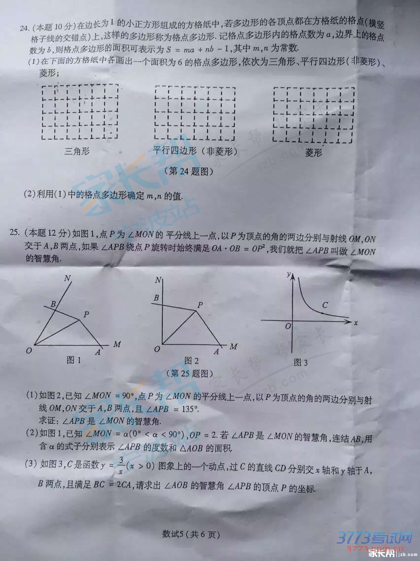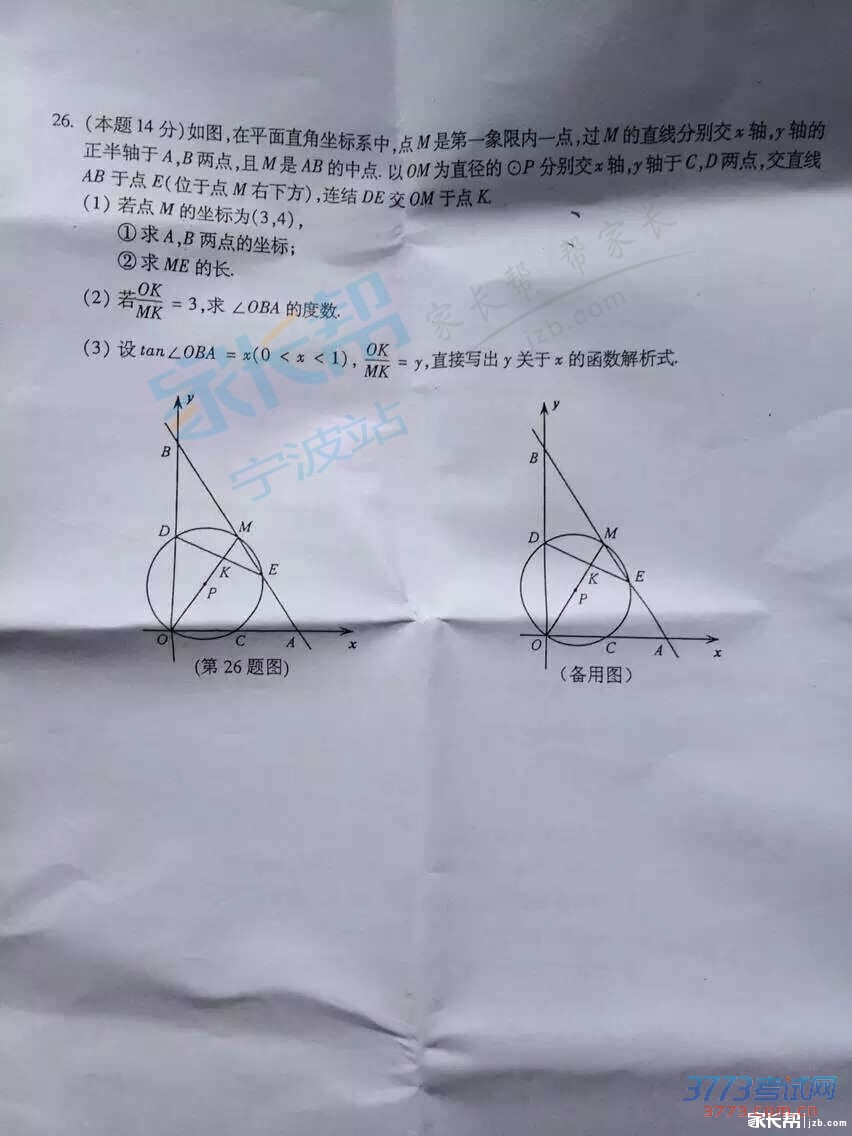 [组图]2015宁波中考数学试题发布