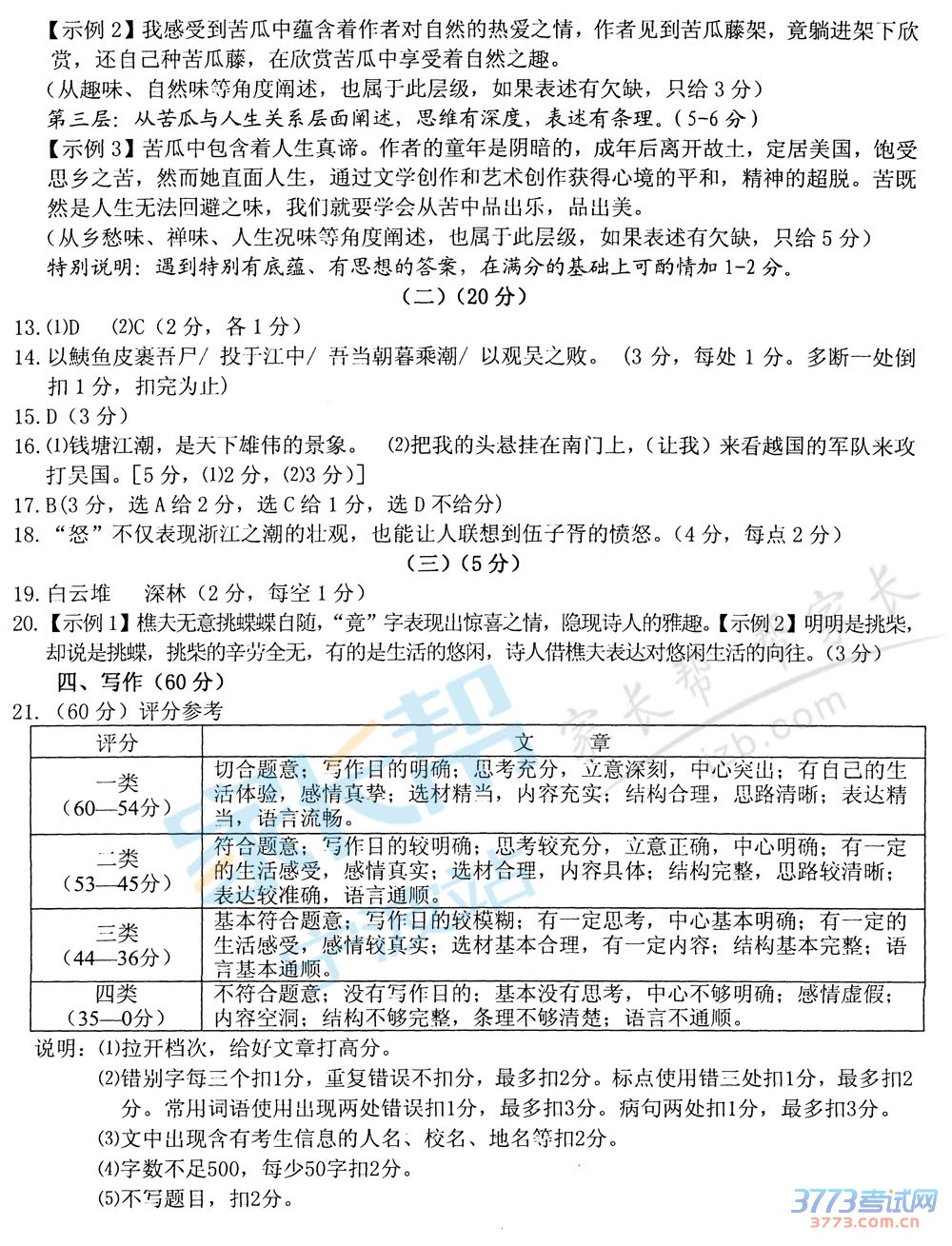 2015年浙江省宁波中考语文试题答案(图片版):
