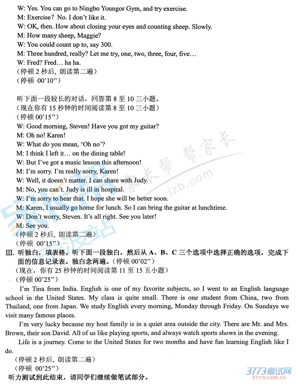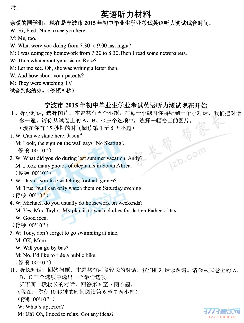 3773考试网2016中考宁波中考正文