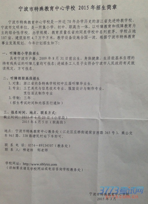 [图文]宁波市特殊教育中心学校2015年招生简章