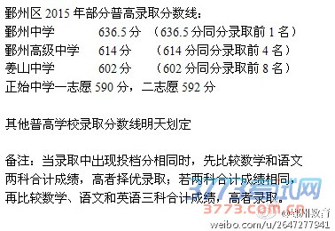 部分普高录取分数线划定】鄞州中学636.5(同分录取前1名);鄞州高级中学614(同分录取前4名);姜山中学602(同分录取前8名);正始中学一志愿590,二志愿592(其他普高学校录取分数线明天划定)。