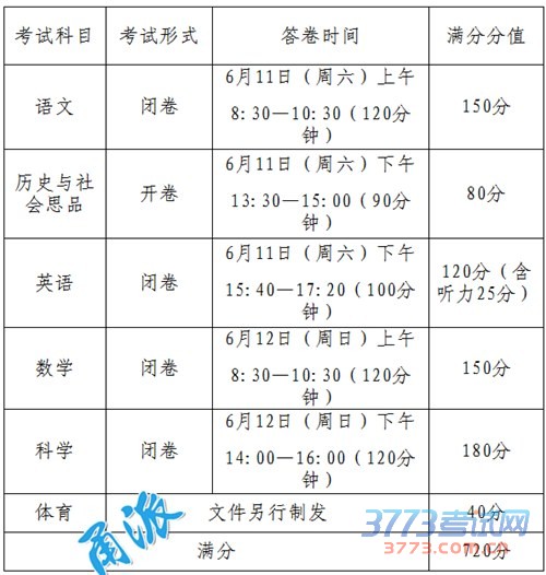 [图文]2016宁波中考考试时间科目分值