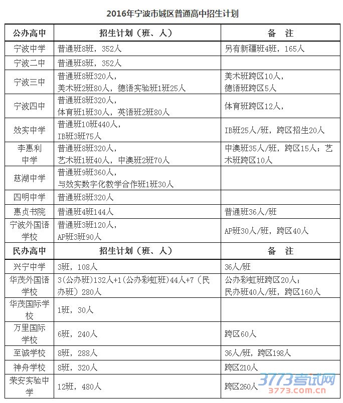[图文]2016宁波市区高中招生计划和跨区招生计划发布